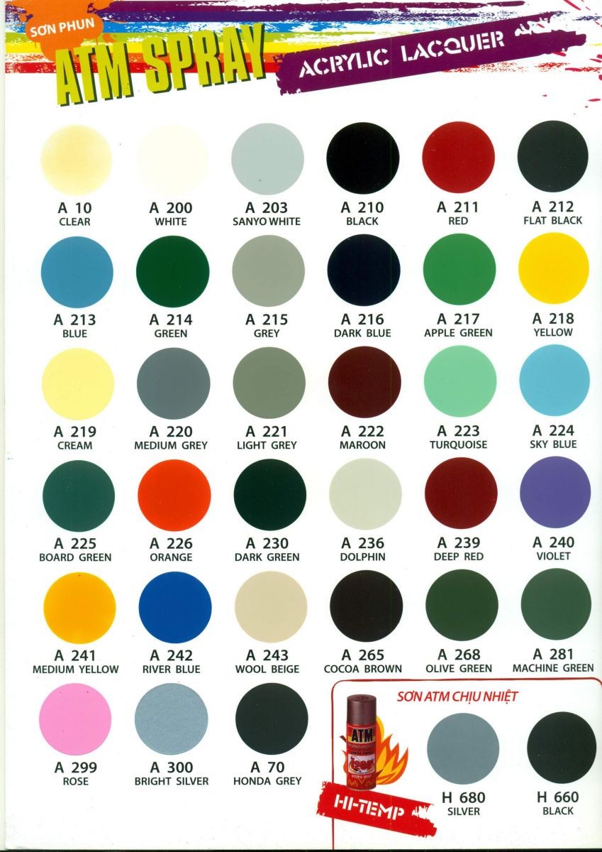 SƠN PHUN ATM hỗn hợp nhựa N/C và Acrylic Lacquer phối hợp cùng chất tạo màu đặc biệt, được đóng gói dưới dạng bình xịt cầm tay rất tiện dụng, dùng để sơn và trang trí cho các bề mặt bằng gỗ, nhựa, kim loại, bê tông… Sơn xịt ATM với đặc tính kỹ thuật cao, thích hợp với mọi điều kiện thời tiết, đặc biệt là vùng khí hậu nhiệt đới. Trong điều kiện sử dụng đúng theo hướng dẫn, sẽ cho lớp sơn có độ bám dính tốt, độ bóng cao, giữ được màu sắc bền đẹp trong nhiều năm.
